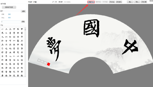 (4)選中例字,在模板上合適位置放置例字;系統(tǒng)會根據(jù)模板的不同自動調(diào)整字的角度,左鍵選中拖動可移動例字,滾動鼠標(biāo)滾輪可縮放例字;調(diào)整合適后,再選擇第二個(gè)字,將自動匹配第一個(gè)例字的大小。排版完成后可點(diǎn)擊“添加標(biāo)簽”便于查找,點(diǎn)擊“保存作品”保存模板。