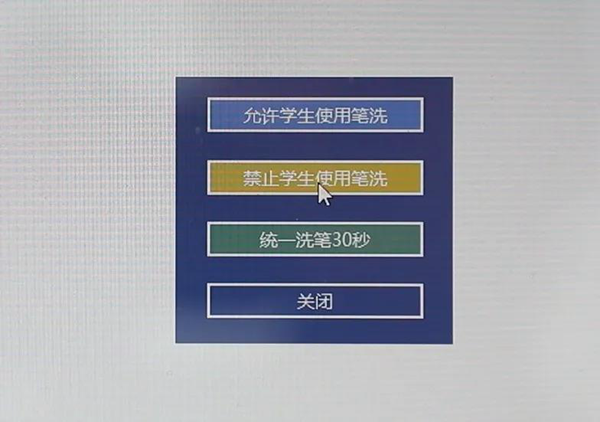 在筆洗功能菜單中點擊【禁止學生使用筆洗】,學生端的筆洗控制按鈕會自動消失,這樣就收回學生洗筆權限。課堂盡在老師掌握。