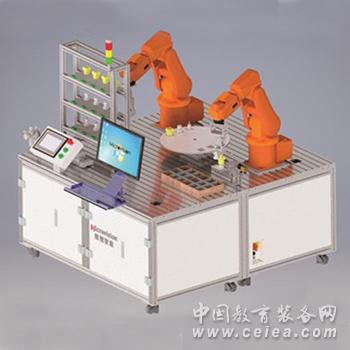 本公司開發的雙機器人協同工作站,給機器人應用開發人員提供了一個真實的實踐平臺。我們將兩臺工業機器人放在一個平臺上,分別執行不同的工作,一個機器人負責從立體倉庫中取出零件,一個負責將單個工件組裝成為一個成品。機器人之間相互協作,相互配合,實現了單個機器人無法完成的復雜組裝工作。是真實工業機器人生產線的縮影。 平臺由部件安裝平臺、兩臺軸工業機器人、旋轉平臺、立體倉庫貨架、機器視覺檢測系統、成品平面倉庫、人機界面、視覺軟件編程運行平臺、氣路系統、PLC可編程邏輯控制系統等組成。 【平臺功能】 1. 實現柔性化生產 整套系統由PLC進行編程控制,加上機器人的靈活性,使整個平臺可以很方便的進行調整和變更,從而實現了多品種,變批量的柔性生產。 2. 工業機器人編程應用 安裝的兩臺ABB機器人是一種可重復編程,能在三維空間完成各種作業的機電一體化自動化生產設備。可用于進行機器人應用研究、新的機器人應用項目驗證、示教編程、與PLC通信等實際應用開發。 3. 自動化技術應用開發 整個平臺搭配有多個傳感器、人機界面、電磁閥、氣動裝置等,可進行PLC自動化控制程序的驗證開發。 4. 機器視覺檢測系統開發 平臺中設計有機器視覺裝置,通過工業相機進行圖像采集,使用工業現場廣泛應用的先進圖像處理軟件,可進行尺寸檢測、字符識別、缺陷檢測、二維碼識別等檢測項目的開發驗證。 5. 生產演示功能 本平臺出廠帶有一套演示程序,立體倉庫貨架中擺有三種不同的工件,分別放置在倉庫中的不同位置,在觸摸屏上啟動生產,倉庫傍邊的機器人就開始將不同的工件放置于轉臺上,放滿后,轉臺自動旋轉,將工件移至裝配機器人工作范圍內。另一邊取放工件機器人再繼續取下第二組工件放置于旋轉臺上。裝配機器人將三種不同工件進行裝配,包括按鈕蓋、彈簧、底座等。裝配完成后由機器視覺系統進行成品檢測,裝配套OK的將會放入機器人前的平面倉庫中。裝配機器人取完零件后,取工件機器人放置完成,旋轉平臺再次旋轉,如此循環,直到將所有工件裝配完成。 |