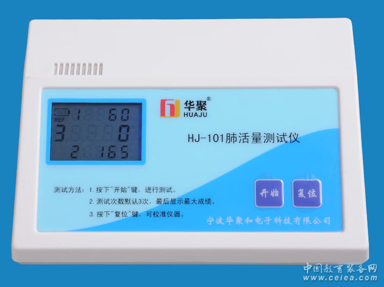 產品詳細介紹華聚HJ-101型肺活量測試儀 參數:量程:100~9999ML 分度值: 1ML 精度:±1.5% 特點:內置蓄電瓶,不需要電源 一次充電可用2天,三排顯示 高精度。帶夜光 晚上也可以看的清楚. 功能:中文液晶顯示,自動清零,準確性好,防水,防補齊,三次測試,自動保存最大值.