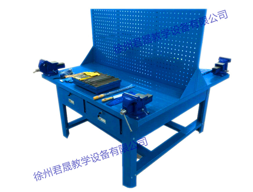 產品詳細介紹概述: 本公司生產鉗工實驗室設備根據教學要求與多家工廠共同開發生產,該產品配備的鉗工工具通用化,標準化和專用化,可提高學生的操作技術和動手能力。鉗工大多是在鉗工臺上用手工工具操作,對工件進行加工。手工操作的特點是技術性強,加工質量的好壞主要取決于操作者技術水平的高低,它的工作范圍較廣,具有萬能性和靈活性的優勢且不受設備、場地等條件的限制,因此凡是采用機械加工方法不太適宜或難以進行機械加工的場合,通常由鉗工來完成,尤其是機械產品的裝配、調試、安裝和維修等更需要鉗工,所以說鉗工不僅是機械制造工廠中應用最廣泛的工種之一,因此鉗工實驗室設備也是各大院校,技校不可缺少的實訓教學產品。 鉗工:鉗工大多是用手工工具并經常在臺虎鉗上進行手工操作的一個工種。 鉗工的主要任務---- 加工零件:一些采用機械方法不適宜或不能解決的加工,都可由鉗工來完成。如:零件加工過程中的劃線,精密加工(如,刮削 挫削樣板個制作模具等等)以及檢驗及修配等。 裝配: 把零件按機械設備的裝配技術要求進行組件,部件裝配合總裝配,并經過調整,檢驗合試車等,使之成為合格的機械設備。 設備維修:當機械在使用過程中產生故障,出現損壞或長期使用后精度降低,影響使用時,也要通過鉗工進行維護合修理。 工具的制造和修理:制造和修理各種工具,卡具,量具,模具和各種專業設備。 鉗工各項操作技能---- 劃線,鏨削,鋸削,銼削,鉆孔,擴孔,锪孔,鉸孔,攻螺紋,套螺紋,矯正和彎形,鉚接,刮削,研磨,機器裝配調試,設備維修,測量和簡單的熱處理。 鉗工的主要工具---- 鉗工主要是以 銼刀 鉆 鉸刀 老虎鉗 臺虎鉗 車床 銑床 磨床為主的工具進行裝配和維修的技術工人 。 鉗工的種類---- 鉗工(普通鉗工):對零件進行裝配,修整,加工的人員。 機修鉗工:主要從事各種機械設備的維修修理工作。 工具鉗工:主要從事工具,模具,刀具的制造和修理 。 鉗工臺主要參數: 鉗工臺的規格:1500×1500×1500mm(桌面高800+防護網700)。 防護網規格1500×700×30沖孔金屬鋼板,帶加強筋。 臺面采用雙面結構,即4個操作工位共用一個平臺。以節約成本和空間。 臺面材料采用50毫米刨花板(或松木)覆2毫米厚鋼板(表面應防銹處理)。 桌架立柱采用2.0厚鋼板折型,規格100×80×750 桌架橫梁及加強梁:1.5厚鋼板折型規格100×40×1.5 抽屜采用1.0mm鋼板,桌面鐵皮全部包起來 .抽T每個可以承重40KG. 鉗工實驗室(一張桌4座/組)每組詳細配置如下: 可以完成常用工具的認識和使用,錘、鋸、銼、鑿、劃線、裝配、調試、安裝、維修等教學工具。 序號 名 稱 規 格 單位 數量 1 鉗工桌 150×150×80 張 1 2 臺虎鉗 5寸 臺 4 3 鋼鋸架