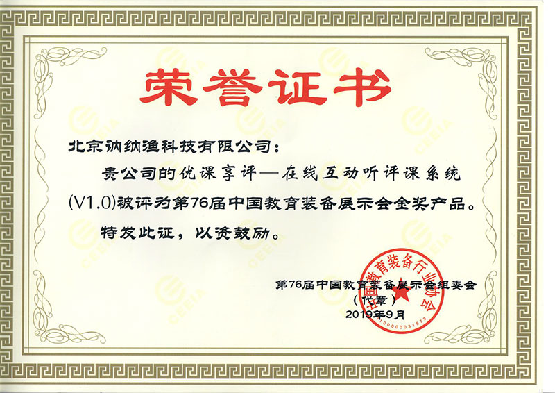 中國教育裝備展示會組委會榮譽證書