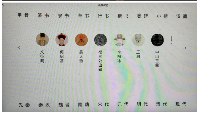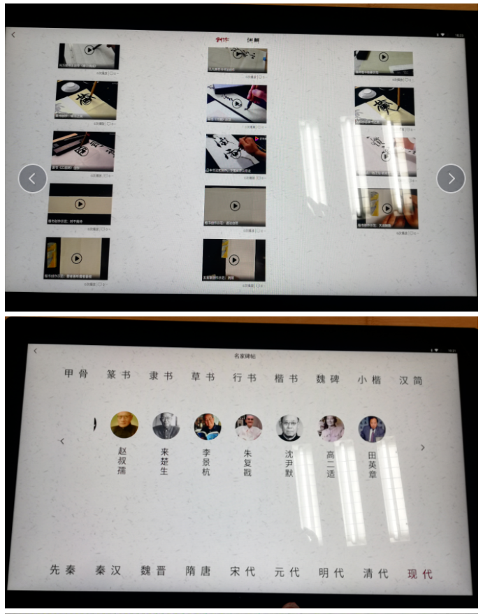 書法教學系統(tǒng):先秦至近代高清碑帖資源放大或縮小,摹帖按年代、書體、作者自由檢索;內置書法文化知識,書法發(fā)展簡史、歷代作品賞析、歷代書論、書法家故事;字帖排版、字帖檢索、視頻展現(xiàn)、動畫演示、單鉤雙鉤的轉換、書體混排、格數(shù)變換、一鍵推送推送至學生端臨摹屏;學生作品展示、圈注點評、保存記錄、對照;集字功能,橫排、豎排、扇面、斗方、條幅一鍵推送至學生端實現(xiàn)集字創(chuàng)作和臨摹。