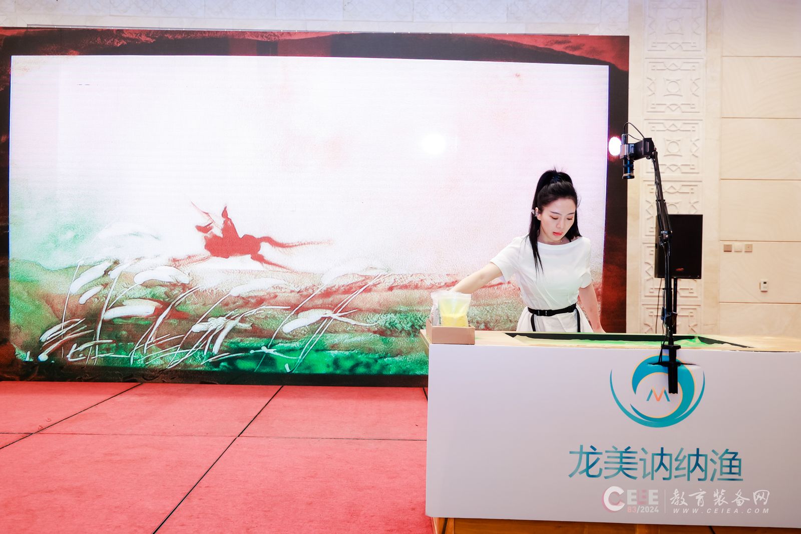 會上,北京龍美訥納漁科技有限公司受邀進行了沙畫表演,贏得了現場與會人員的熱烈歡迎與稱贊,智慧沙畫教室是由龍美訥納漁美術自主研發的沙畫表演教育裝備,智慧沙畫教室可為學生們帶來一次前所未有的藝術體驗。不僅配備了先進的技術設備,還融入了多元化的教學方法,使得沙畫教學變得更加生動有趣。