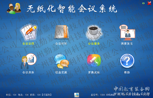 軟件含:服務器軟件、管理端控制軟件、用戶端軟件、大屏投影用戶端軟件,無紙化會議系統軟件功能 1,支持四路外部HDIM信號輸入 在會議使用過程中,需要使用外部筆記本時,在管理端隨時導入筆記本信號,讓與會者與筆記本同步顯示。 2,電腦一鍵開關機 在后臺管理端可控制所有電腦主機一鍵開啟和一鍵關機。開啟后,可對所有電腦終端全部重啟和全部關機,或者可以對會議中不需要使用的部分電腦進行選擇關機,節(jié)省資源。使會議效果最佳。 3,軟件重啟和關閉 在會議使用過程中,可選擇在會議結束后,對軟件進行關閉和重啟管理。 4,座位編排 在管理端座位編排界面,預先設定好每個參會人員的IP地址(最大支持256個IP),進行編號,輸入參會人員名字?娠@示參會人員參會狀態(tài),簽到時間,進行統一管理。 5,參會人員 在管理端參會人員界面,可對即將要進行會議的所有參會人員:姓名,單位,職務等進行填寫。 6,議題管理 可在議題管理界面對即將要進行的會議主題名稱進行設定,logo設置,會議議程,相關會議資料進行選擇并上傳,支持多種格式的文件,可增加、修改、刪除會議議題。 7,會議安排 可在會議管理界面選定事先設置好的會議議題,編輯會議,可根據需要同時編輯多場會議,可增加、修改、刪除會議,設置會議簽到的時間,進行會議,一個會議內可添加多個議題。 8,會議簽到 在會議安排界面,設置好會議開始時間,點擊開始按鈕,每臺終端會出現簽到界面,管理端可編輯簽到界面的背景圖片或顏色、字體格式、字體的大小、字體顏色、簽到按鈕的顏色字體等、簽到界面的布局等,會議端點擊簽到按鈕后,簽到結果會在管理端顯示出來。 9,會議表決 無紙化會議投票表決分為:記名投票和不記名投票。不記名投票會以圖表的方式呈現,記名投票會以表格方式記錄,同時可以保持在桌面。 10,信息交流 在客戶端進入信息交流界面,可以與管理端進行文字交流,也可以在公共信息內交流,管理端有禁止或允許本會議功能的權限。 11,更換皮膚 在客戶端可以更換皮膚,本軟件有五套備用皮膚。 12,會議幫助 在客戶端及管理端均有會議幫助,在不了解本軟件的情況下,可以進入電子版的WORD文檔進行學習。 13,監(jiān)視器 通過后臺管理端,進入監(jiān)視器界面。對會議所有終端進行實時動態(tài)監(jiān)控管理。每臺客戶端的界面都會顯示在后臺屏幕上。 14,允許發(fā)言 當客戶端有參會人員需要發(fā)言,點擊軟件界面中我要發(fā)言按鈕,管理端會出現提示,經管理人員允許后,方可進行發(fā)言,允許發(fā)言后,所有客戶端同步同屏到發(fā)言人的電腦畫面,客戶端可以隨時退出及返回同屏。 15,會議通知 可在會議開始前設定好在參會時需要主要的事項以及相關的重要會議通知等,通知內容會以輪回滾動的狀態(tài)顯示在每個會議客戶端上。 16,強制同屏 在所有客戶端中選定一臺,實現其他客戶端的畫面與已選定的客戶端保持一致。可支持文件,視頻等同步播放。 17,會議保密 會議結束后,所有會議資料只要不刪除議題名稱可保存,下次可以繼續(xù)上次開會議程。 18,會議批注 可在會議文件上進行批注、圈劃,批注內容可保存。 19,會議服務 參會人員可依據自己的需要向會議管理人員發(fā)出請求服務,可呼叫:礦泉水、添茶水、筆、紙、計算器等 20,演示模式 當會議比較簡單時,可演示模式,客戶端電腦會自動同屏到管理端(強制同屏,客戶端鍵鼠都不可以用,只能看內容)。 21,會議模式 會議模式下有簡易會議、正式簽到會議、正式會議,簡易會議不需要編輯參會人員的姓名,單位,職務,編輯好會議就可直接進入會議;正式簽到會議需要編輯好參會人員的姓名,單位,職務等信息,在編輯會議的界面安排座位,開始會議之后,由客戶端簽到方可進入會議;正式會議同樣需要編輯參會人員的姓名,單位,職務等信息,增加完成后不需要簽到便可進行會議; 22,支持雙屏顯示 支持雙屏顯示,在正屏+背屏的雙屏升降一體機上,除了讓電腦顯示屏的正屏顯示外,背屏可以顯示軟件里直接編制的人員名字等; 23,實現與會者和與會者之間點對點同屏,在會場需要的時候可以通過管理端指定與會者之點對點同屏或參會者與大屏或投影點對點同屏 24,電子白板:支持個人使用與交互使用,支持多人同時共享在同一白板上書畫,支持白板存檔、載入,支持將白板內容同步到投影儀或大屏。