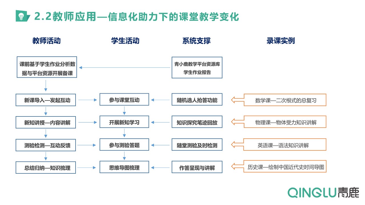 在賦能新教學方面,馬副主任主要從課堂的“新課導入”“新知講授”“測驗檢測”“總結歸納”等不同環節展示了青小鹿智慧紙筆應用下課堂教學的變化,不同學科的錄課實例吸引了與會嘉賓們的關注與熱烈反響。