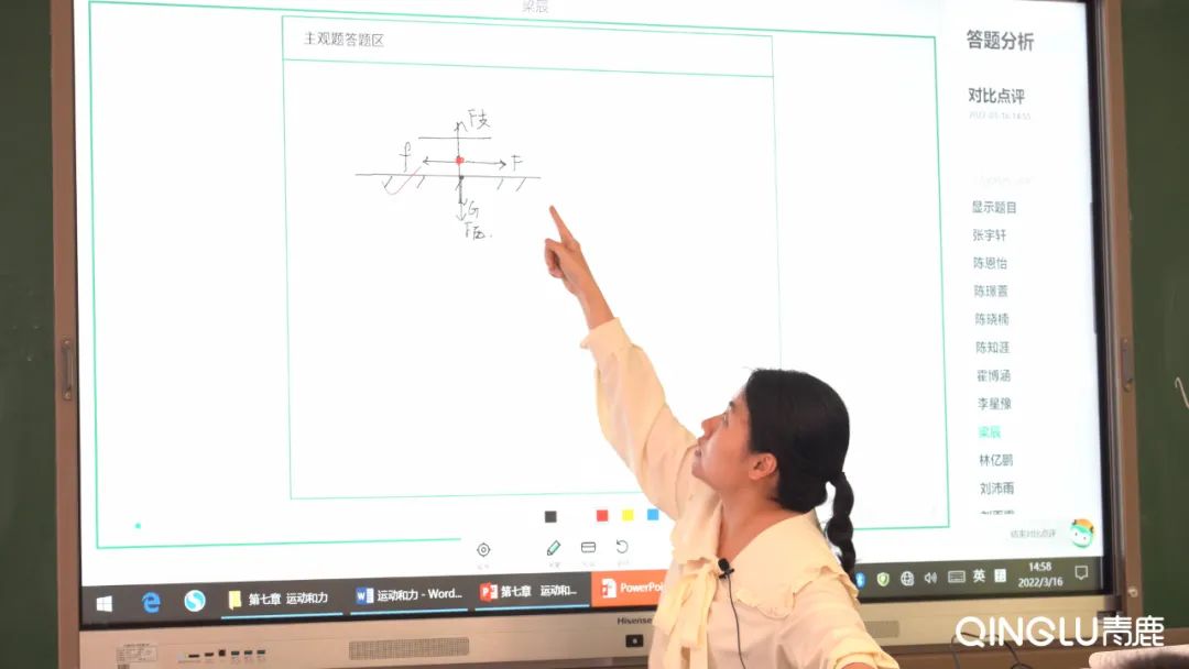 比如,在物理課《物體受力知識講解》的“新知講授”環節,呂老師通過青小鹿智慧紙筆系統下發繪制木塊受力示意圖的任務,使用筆跡回放功能來了解學生在分析受力時的思路,著重對學生思路的糾正與講解,以此提高學生解決問題的綜合能力。