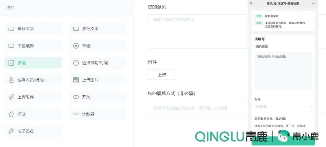 青小鹿管理平臺收集表單支持多種控件自定義組合,填寫方式靈活兼容電腦端和移動端,可實時監(jiān)控提交情況。