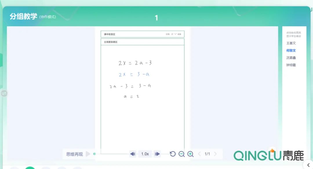 當(dāng)老師發(fā)起小組任務(wù)后,學(xué)生即可進(jìn)行組內(nèi)研討,并通過青鹿智能筆書寫自己的觀點(diǎn),完成小組任務(wù),有效增強(qiáng)學(xué)生知識(shí)點(diǎn)掌握,激發(fā)學(xué)生創(chuàng)新思維,促進(jìn)學(xué)生協(xié)同合作能力。
