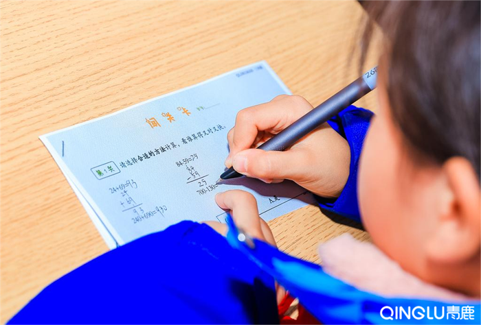 課堂上,學(xué)生們使用青鹿智能筆在印有點(diǎn)陣碼的學(xué)習(xí)單上書(shū)寫(xiě),筆跡通過(guò)智能筆實(shí)時(shí)傳輸至課堂大屏。教師全程動(dòng)態(tài)監(jiān)測(cè)學(xué)生作答過(guò)程,精準(zhǔn)捕捉個(gè)體差異。在講解環(huán)節(jié),黃瑩老師通過(guò)回放學(xué)生的書(shū)寫(xiě)軌跡,直觀還原其解題思路,幫助全班深入理解易錯(cuò)點(diǎn),實(shí)現(xiàn)“思維可視化”教學(xué)。