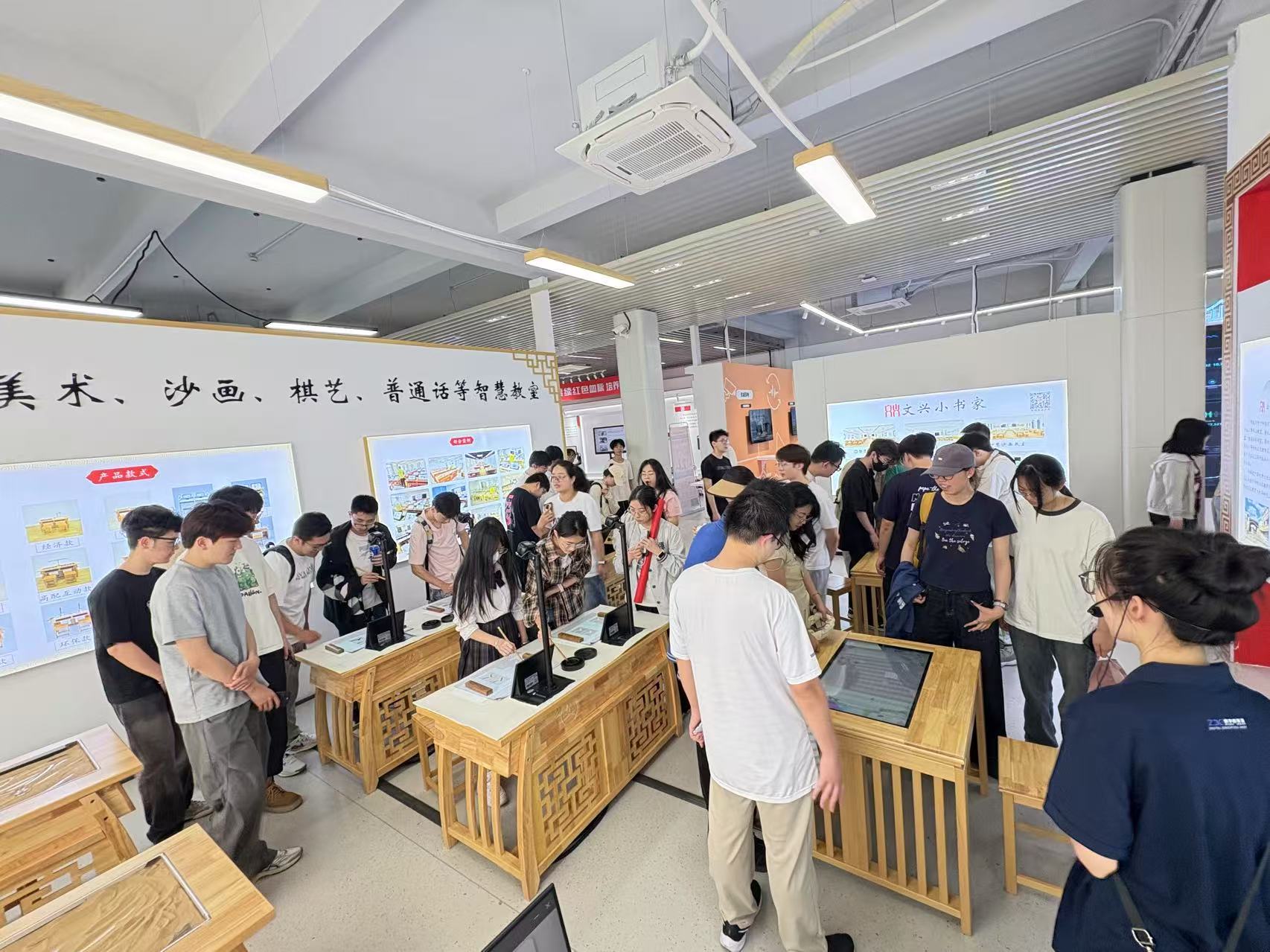 2025年5月14日,杭州師范大學信息科學與技術學院計算機師范 23 級師生一行來到文興小書家,開啟了一場別開生面的參觀交流活動,深入探索智慧書法、美術、棋藝、沙畫教室等前沿教育產品,感受科技與藝術教育融合的魅力。