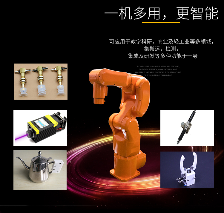 產(chǎn)品詳細(xì)介紹輕量化、微型化、功能全;是濃縮了企業(yè)一線制造車間用的工業(yè)機(jī) 器人所有的基本功能,真實(shí)的機(jī)器人控制系統(tǒng),與 ABB/安川等品牌機(jī)器人編程語(yǔ)言規(guī) 則相似,提高學(xué)生編程能力。可搭配舞獅服飾或?qū)懽謯A具、吸盤,用于娛樂或觀賞應(yīng)用 編程學(xué)習(xí)和機(jī)器人寫字或搬運(yùn)碼垛編程應(yīng)用。六自由度機(jī)器人是一款針對(duì)高校教學(xué)應(yīng) 用開發(fā)的六軸機(jī)器人。機(jī)器人結(jié)構(gòu)緊湊、體積小、重量輕、其最大負(fù)載 5KG,臂展活動(dòng) 范圍540mm。腕部采用中空結(jié)構(gòu),走線更方便、動(dòng)作更靈活 |