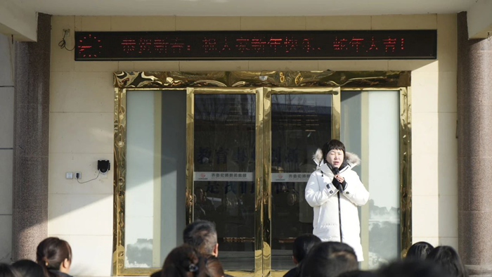 在會(huì)議的高潮部分,齊魯宏博教育裝備集團(tuán)的總經(jīng)理劉總上臺(tái)發(fā)表了新春賀詞及開(kāi)年講話。劉總首先向全體員工致以最誠(chéng)摯的新春祝福,感謝大家在過(guò)去一年里的辛勤付出和不懈努力,為公司的發(fā)展奠定了堅(jiān)實(shí)的基礎(chǔ)。