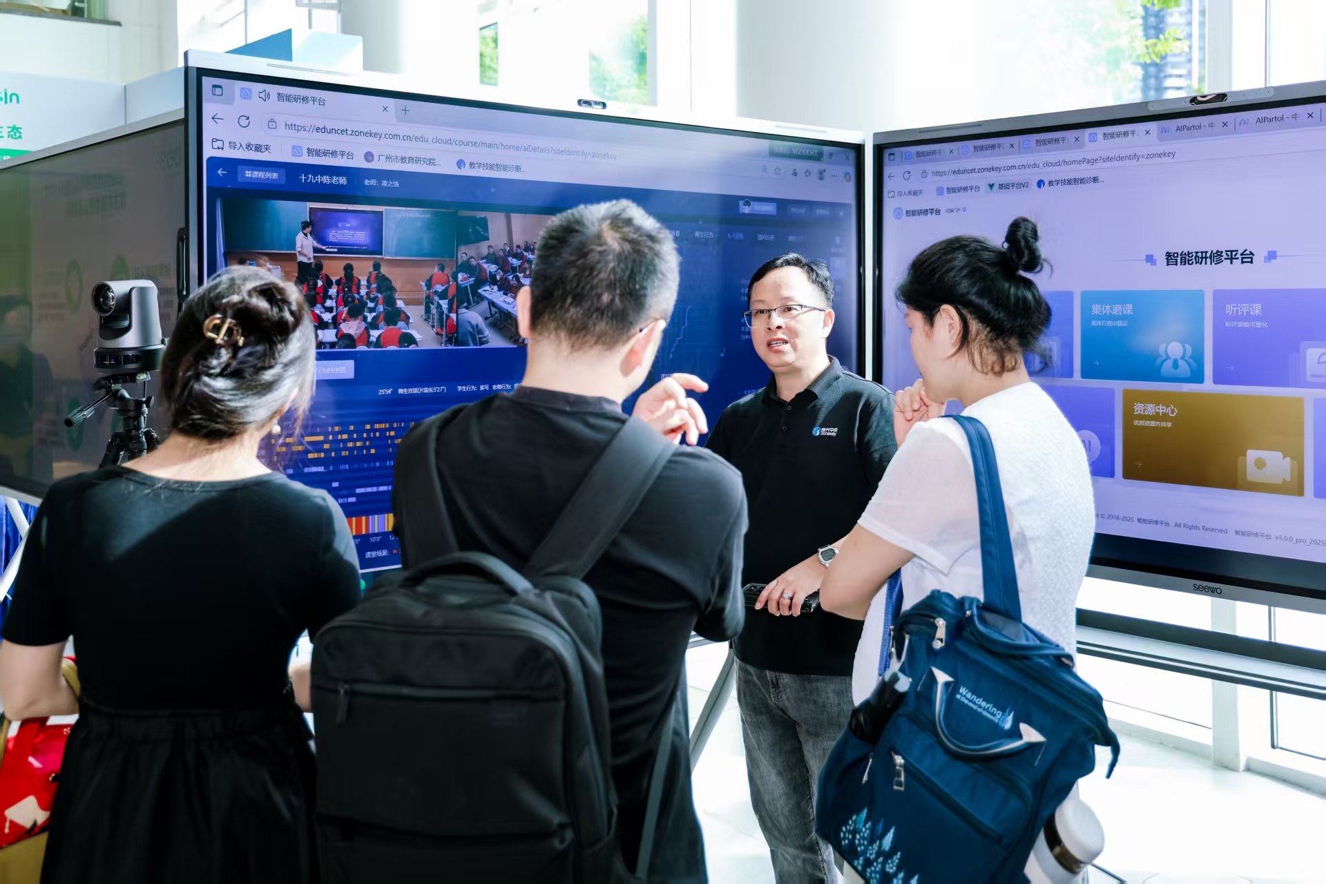 研討會期間,同時舉辦的“智能科技教育裝備展”,旨在為參會者提供一個直觀、沉浸、互動的AI教育場景體驗平臺,F代中慶展出了多個教育AI應用方案。包括AI精準教研,AI巡課與督導,AI教學技能實訓等,讓與會嘉賓沉浸式體驗了AI賦能下教師專業成長和教學質量管理范式的數字化轉變。