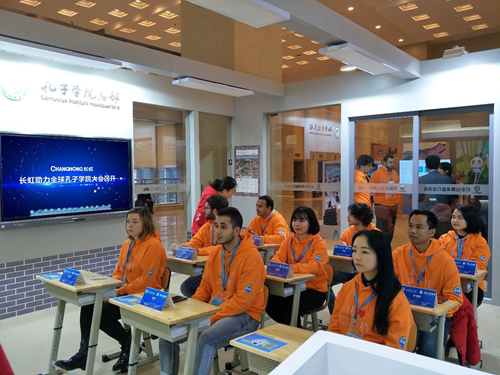 長虹作為中國教育信息化綜合服務提供商,將助力孔子學院總部及其遍布海外154個國家的孔子學院分院,為其教育裝備建設方面提供解決方案及技術支持,充分發揮長虹在教育領域的技術積累和經驗優勢,有效解決孔子學院對外教學課程無法同步、地域分散、教學資源分散等推廣難題。