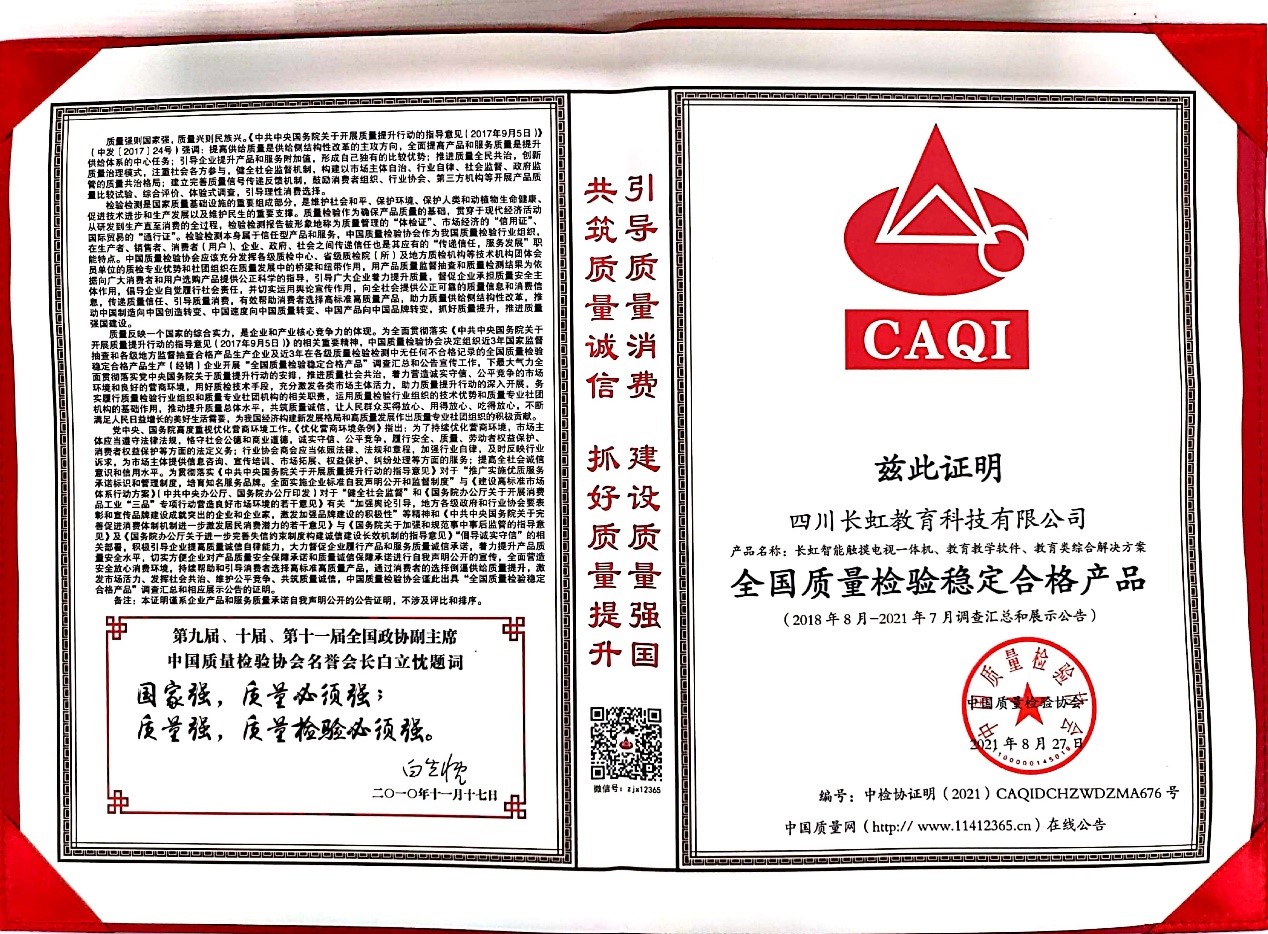 近日,從中國質量檢驗協會獲悉,由國家市場監管總局、中宣部、發改委、教育部、科技部、工業和信息化部等20個相關部門聯合行業協會共同主辦的2021年全國質量月活動中,長虹教育科技憑借過硬的產品品質、誠信的企業經營,斬獲