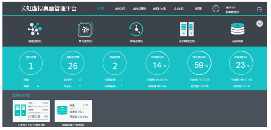 長虹云智能交互系統還提供了交互式虛擬桌面管理平臺,可實現智能交互大屏、筆記本電腦、臺式電腦、移動設備接入系統并獲得一個專屬的空間。系統為每一位老師分配一個賬戶,賬戶對應老師的個人專屬空間,為不同學科定制的個性化空間能夠更加方便老師的教學,無論是在學校的任意一間教室或者辦公室,老師們都可以通過自己的賬戶訪問個人空間隨時隨地移動備課和辦公。該管理平臺圖形化、可視化程度高,系統操作相對簡易,不需要過多的培訓和學習就能上手操作。同時,還可以實現用戶權限集中管理設置、虛擬機狀態監控及用戶行為查看、服務器性能狀態監測、終端狀態監測,遠程控制終端、客戶端支持強制重啟虛擬機、虛擬機資源分配及狀態管理等。