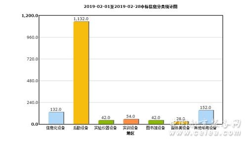 從2月份各類別教育裝備招標采購信息量分析圖中(如圖2所示)可以看出:音體美設備招標采購信息環比下降55.56%;實訓設備招標采購信息環比下降45.19%;信息化設備招標采購信息環比下降30.60%;實驗儀器設備招標采購信息環比下降24.36%;其他設備招標采購信息環比下降23.21%;圖書館設備招標采購信息環比下降17.46%;后勤設備招標采購信息環比下降1.71%。