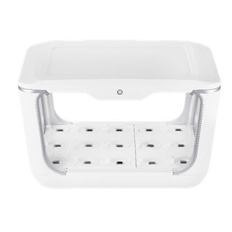 蔬坦室內種植機的燈板模仿太陽光源,為植物提供足夠的光照;內嵌風扇的微風模式配合四面立柱的鏤空機身設計,加速了植物間的空氣流通,幫助植物順暢呼吸,提升植物生長效率。同時,風扇也解決了燈板的散熱問題,保證使用安全。