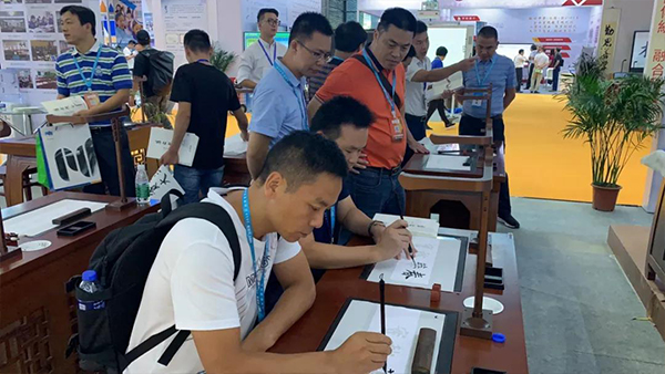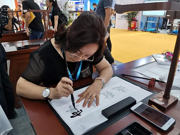 《中小學智慧書法教室裝備規范》團體標準的牽頭制定單位華文眾合參加了此次博覽會,并展出智慧書法教室,深受觀眾喜愛。多位行業協會領導蒞臨華文眾合展位進行參觀指導。