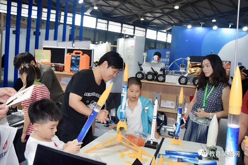 互動體驗區分為學前教育裝備應用體驗區、義務教育階段學校教育裝備應用體驗區、教育裝備企業體驗區。在“學前教育裝備體驗區”觀眾可以現場體驗AI互動音樂魔方、印制坊、木工坊等,在義務教育階段學校教育裝備應用體驗區,觀眾可以體驗到火箭燃料制作、運輸,火箭模型搭建,月表地貌掃描、月表礦石開采、食用菌培養、生態瓶的制作等。在教育裝備企業體驗區,可以體驗到TI創新者系統(小黑盒)應用、靈動的小球—設計與重力勢能的探究以及智能駕駛感受未來交通。