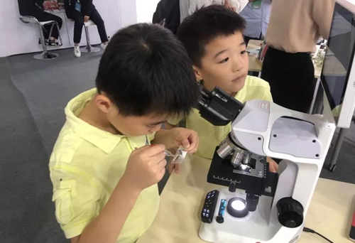 小觀眾在顯微鏡前個(gè)個(gè)化身好奇寶寶