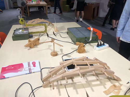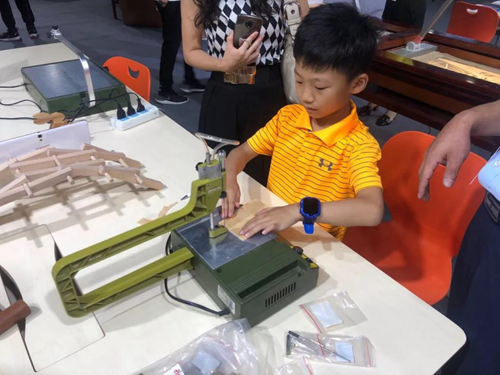 小觀眾使用安全不傷手的器械體驗(yàn)?zāi)舅囍谱?