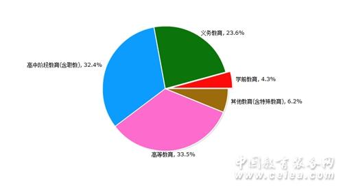 9月中標信息所屬領域統計圖,如圖10所示:學前教育占比為4.3%;義務教育占比為23.6%;高中階段教育(含職教)占比為32.4%;高等教育占比為33.5%;其他教育(含特殊教育)占比為6.2%。