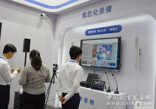 本屆展會(huì),聲菲特推出了雙師課堂互動(dòng)體驗(yàn)區(qū),主要展示智慧教學(xué)擴(kuò)聲和精品錄播系統(tǒng),采用陣列麥遠(yuǎn)程拾音、音頻處理器特殊反饋算法處理后、通過(guò)音柱控制覆蓋把聲音傳送出來(lái),再搭配攝像頭和錄播主機(jī),可無(wú)縫對(duì)接遠(yuǎn)程音視頻互動(dòng)教學(xué),系統(tǒng)操作簡(jiǎn)單,真正地解放老師的手腳,讓老師只專(zhuān)注于教學(xué)內(nèi)容,使課堂互動(dòng)更活躍,效果更好。