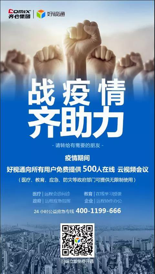 為了不讓學生們因延期開學而延誤學習,好視通云課堂支持各大學校遠程教學,學生通過手機、電腦、平板或電視就能在線學習。疫情期間,齊心好視通面向全國所有用戶免費提供500方云視頻會議,醫療、教育、應急、防災等政府部門可供無限制使用。