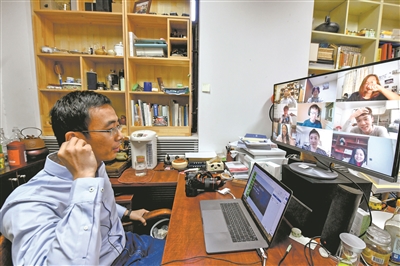疫情期間,清華大學新聞與傳播學院副教授梁君健在辦公室進行遠程授課,講授攝影課程。鄧偉 攝