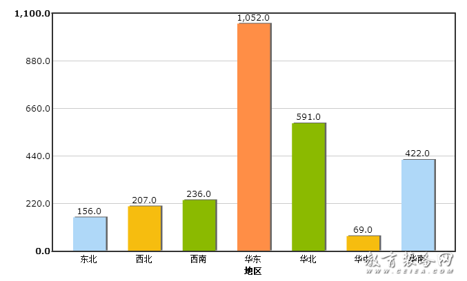 與去年同期相比,除華中地區和華南地區有下降外,其他地區均有不同程度的增長。其中,華中地區下降幅度最大,下降64.72%,西北地區則增長幅度最大,增長133.33%。