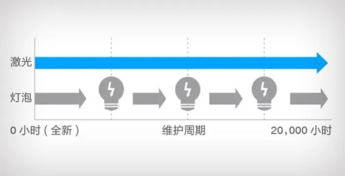 *3 上述時間為非承諾保修時間。激光光源亮度將隨使用時間的增加而逐漸降低。激光光源實際使用壽命受使用模式、環境 條件、用戶使用習慣等因素影響會有很大差別。投影機在低亮度模式下使用,激光光源使用壽命會得到有效延長。