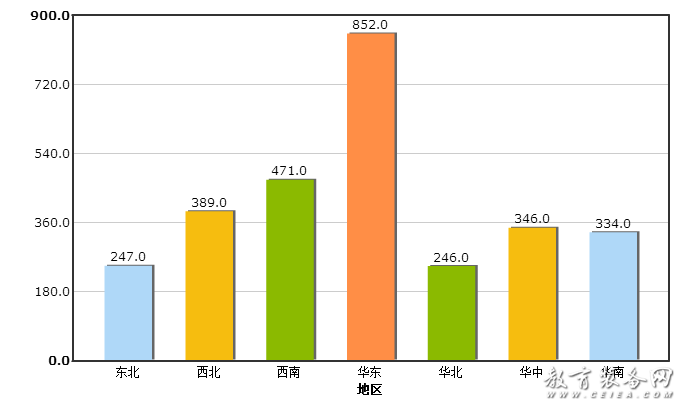 從教育裝備區(qū)域中標(biāo)信息量來看,華東和西南地區(qū)收集的中標(biāo)信息量較多,其中,華東地區(qū)中山東省信息量最多,西南地區(qū)中四川省信息量最多。