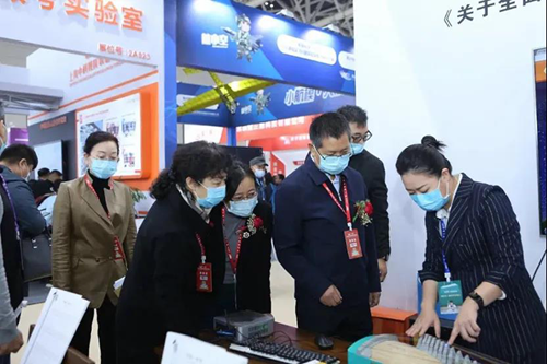 陜西省教育廳教育技術裝備管理中心主任趙夢等領導也蒞臨晨語展位進行參觀考察,體驗智能箏彈奏,并給予高度評價。