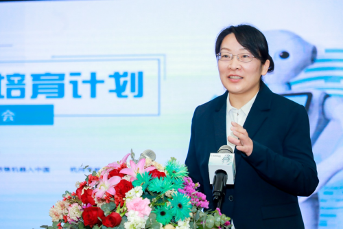 軟銀機器人中國大中華地區總經理邱靚在致辭中介紹了計劃的進展情況,表示將通過培訓、教材編寫、提供國際型機器人競賽等渠道,為浙江AI機器人教育提供幫助和支持。