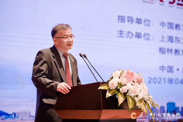 在主題報告環節,上海市教育委員會教育技術裝備中心主任竺建偉以《加強和改進中小學實驗教學的若干思考》為主題,提出要把握“實驗”的本質和實驗教學的價值取向,聚焦實驗教學的研究和管理,重構實驗教學環境,提升教師實驗教學能力。