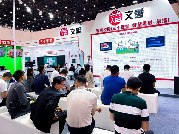 本屆展會,文香為大家帶來了智慧教室、三個課堂、虛擬演播等解決方案,文香學堂、學生行為分析等智慧教育軟件平臺,以及智慧黑板、常態化錄播、便攜錄播、智慧講桌等先進教育產品。讓到場觀眾親自體驗在面對不同教育問題時,運用信息技術和人工智能融合成對應的教學場景,助力教育信息化高效支撐教育現代化。