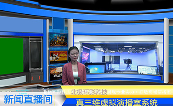 北極環影真三維無軌虛擬演播室系統提供3D Virtual sets Builder 場景搭建套件,提供大量的三維模型庫,讓用戶自由搭建個性化的場景,GPU摳像,廣播級的字幕包裝、多路信號的多攝像機切換、流媒體推送等完善的周邊應用,滿足錄制各種電視節目、教育錄播、講座等需求。