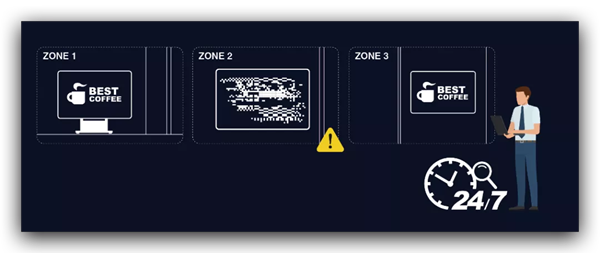 因應(yīng)不同展示場景需求,無論是投影機(jī), 互動白板, 到大型LED 顯示器屏; 透過單一控制面板及指令可全面監(jiān)控大屏顯示群組. 問題發(fā)生時立即發(fā)出警示以便及時排除。