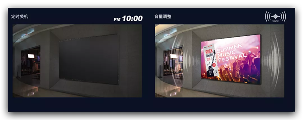 透過區(qū)網(wǎng)可控制例如定時關(guān)機(jī), 調(diào)整音量, 訊源切換等功能, 提升營運(yùn)效率