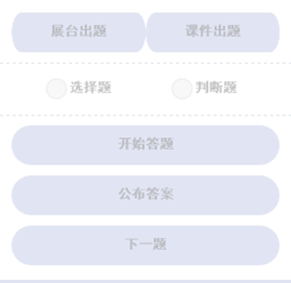 教師通過(guò)大屏展示測(cè)驗(yàn)考題,將試題轉(zhuǎn)化為電子形式展示,節(jié)約成本的同時(shí)也能夠讓學(xué)生清晰地看到試題。學(xué)生通過(guò)按鈕進(jìn)行作答,大屏實(shí)時(shí)展示答題狀況。
