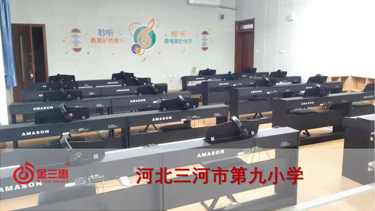 河北三河市第九小學的數字音樂電鋼琴教室、電鼓教室開始使用,本校數字化音樂教室由北京金三惠科技有限公司負責提供、安裝、培訓。
