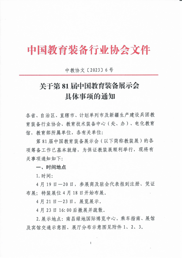 第81屆中國教育裝備展示會(以下簡稱教裝展)的各項籌備工作已基本就緒,為保證教裝展順利舉行,現將有關事項通知如下: