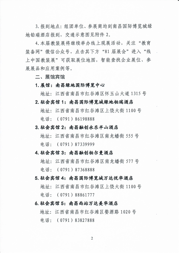 2.展示地點:南昌綠地國際博覽中心,乘車指南、展館及賓館交通示意圖、展廳分布示意圖見附件1、2、3。
