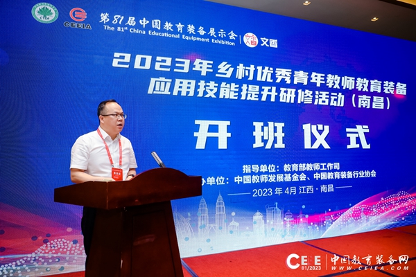 4月21日上午,2023年鄉(xiāng)村優(yōu)秀青年教師教育裝備應(yīng)用技能提升研修活動開班儀式在第81屆中國教育裝備展期間舉行。本次活動由教育部教師工作司指導(dǎo),中國教師發(fā)展基金會、中國教育裝備行業(yè)協(xié)會主辦,來自福建、江西、湖北、湖南的200余位鄉(xiāng)村優(yōu)秀青年教師共同參加。