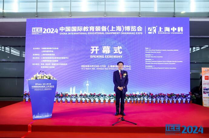 3月15日,2024中國國際教育裝備(上海)博覽會在上海新國際博覽中心正式開幕。教育部關心下一代工作委員會常務副主任、中國教育裝備行業協會專家委員會主任王富,上海市教育委員會副主任王浩,中國教育裝備行業協會秘書長李灜,上海市教育學會副會長蘇忱等出席開幕式。開幕式由上海市教育委員會教育技術裝備中心黨總支書記、副主任周齊佩主持。