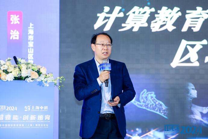 開幕式當天舉辦了“數智賦能·創新培育”主旨論壇,王富、蘇忱致辭。論壇上,上海市教育委員會副主任王浩、上海市寶山區教育局局長張治作主旨報告。隨后,上海市閔行區教育學院院長朱靖、上海市金山區第二實驗小學校長金平、上海市曹楊第二中學附屬學校副校長李冬、上海市延安中學校長李德元作微報告交流。論壇通過對教育數字化轉型多視角審視、多維度探討,探索在新質生產力的發展浪潮中,數智賦能學校實踐路徑、創新培育人才成長空間,助力營建更加和諧美好的教育生態。
