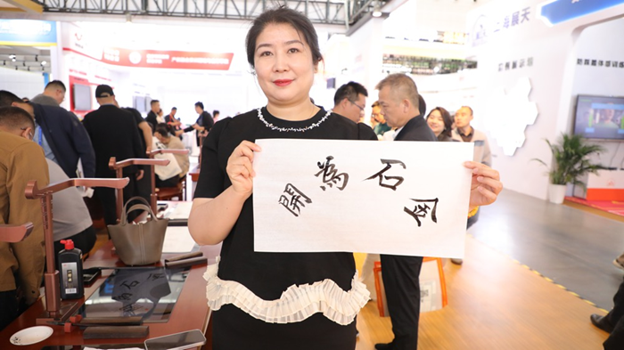 教育部關心下一代工作委員會常務副主任王富現場背誦《蘭亭序》全文,觀眾云集,掌聲雷動,將展會氛圍推向高潮。