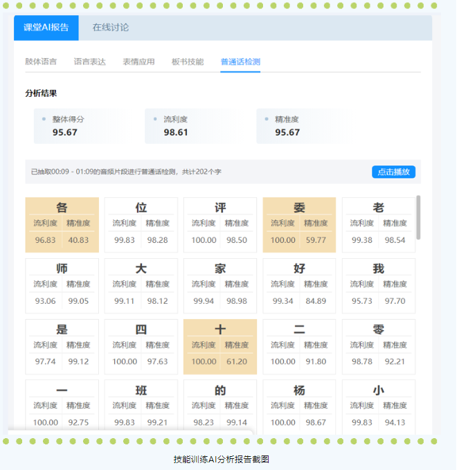 5. 普通話技能分析:普通話的精準度和流利度的分析。